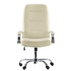 Хромированные подлокотники покрыты мягкими накладными элементами. Особый комфорт добавляет широкая мягкая спинка и сиденье кресла с толщиной поролона 80 мм.